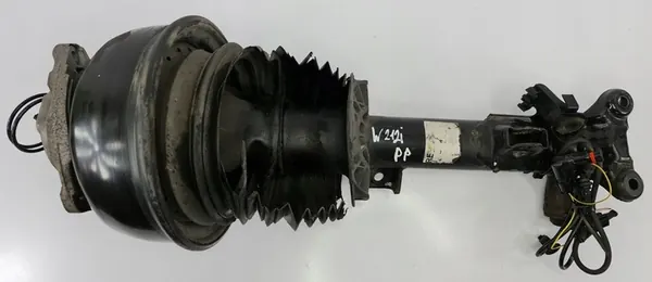 AIRMATIC stötdämpare för fram höger position, OEM-del A2123203238. Delen är begagnad och har synliga skador på skyddet som visas på bilderna.