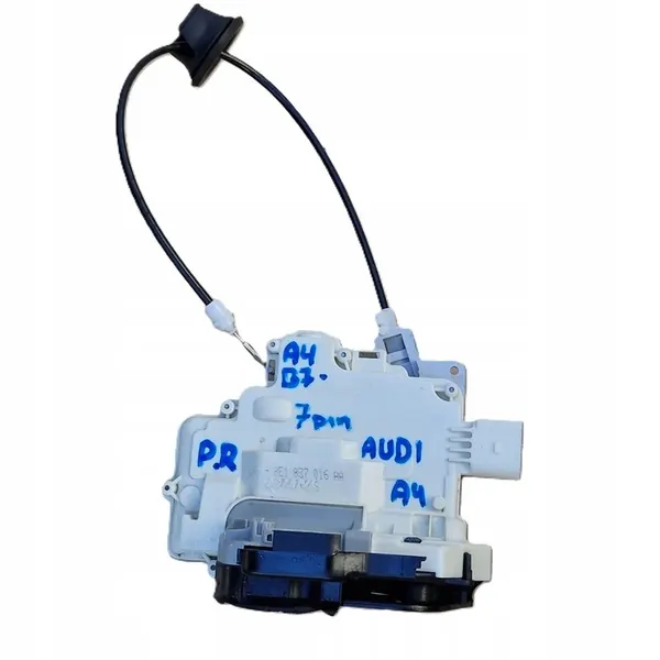 Använt fram höger dörrlås för AUDI A4 B7, modell 2007. Denna del kommer från ett demonterat fordon och är i fungerande skick. Det är en europeisk version och en originaldel med OEM-nummer 8E1 837 016 AA. Kontakten har 7 stift. Riktiga bilder tillhandahålls.
