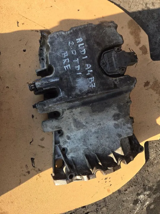 Oljepanna med sensor för Audi A4 B7 Sedan från 2007 med en 2.0 TDI-motor (1968cm3) som producerar 103kW (140 hk), motor kod BRE, lackkod LZ7L Svart. EUROPEISK VERSION. Skick som visas på bilden, redo för återmontering.