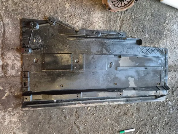 Höger underbensskydd för Audi A4 B8. Skyddet har en spricka som visas på foto nummer 4. Denna del är begagnad och levereras med en moms faktura.