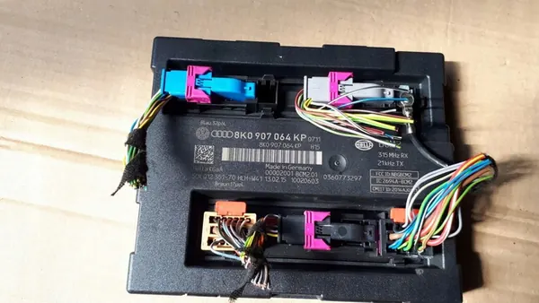 Komfortmodul för AUDI SQ5 8R, OEM-delnummer 8K0907064KP. Kompatibel med Audi Q5 och SQ5-modeller från 2008 till 2017. Motor: 3.0 L Bensin, tillverkningsår 2013. Färgkod: LY9C. Kört sträcka: ej specificerad. Delen visar normala användningsspår. Ytterligare detaljer: 2015 års modell med 3.0 TFSI-motor (CTU CTUD) som producerar 354 HP (260 KW), transmissionskod QCY, färgkod LY9T, kört sträcka 112.984 km. Lagerindex ##0302, hylla &&31, övre lagring @03.