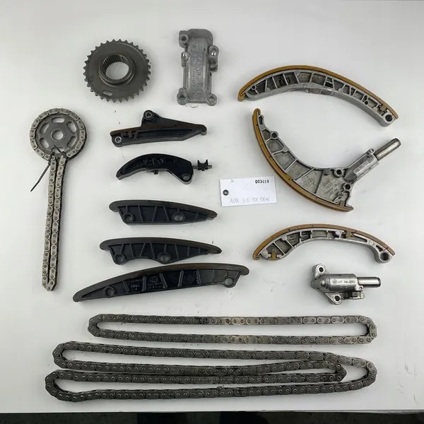 Timing belt set for Audi V6 3.0 TDI engines. Service numbers include 059109467AP, 059109509K, 059103708A, 059109507AE, 059109510N, 059109469AB, 059109513N, 059109514N, 059109467AE, 059109538R, 059109569AA, and 059109570F. This set is compatible with engines DEWA, DEWB, and others. Models include Audi A4, S4, A5, S5, A6, S6, A7, S7, Q5, SQ5, A8, S8, Q7, Q8, and VW Touareg. The condition is very good, as shown in the pictures.