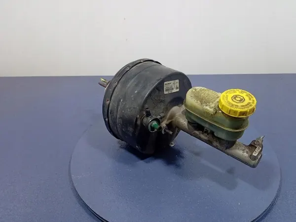 Bromsservo för Chrysler Stratus I, 2.0B, 131 hk. Artikeln inkluderar en bromspump och en behållare, med synliga tecken på korrosion som visas på bilderna. Kvalitetsbetyg: B.
