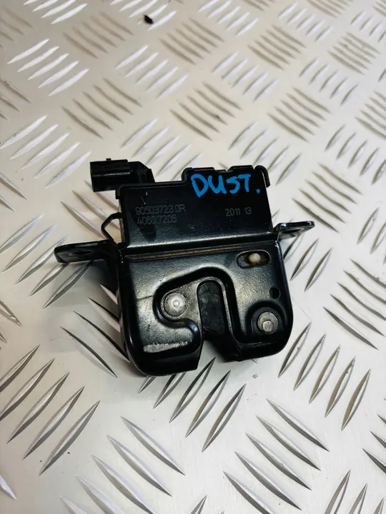 Originalt baklucka lås för DACIA DUSTER I, artikelnummer 905037230R, i utmärkt skick. Denna begagnade del är en OEM-kvalitetskomponent från Dacia, i enlighet med GVO-standarder. Den väger 5 kg och levereras med en moms faktura. Lämplig för europeiska versioner.