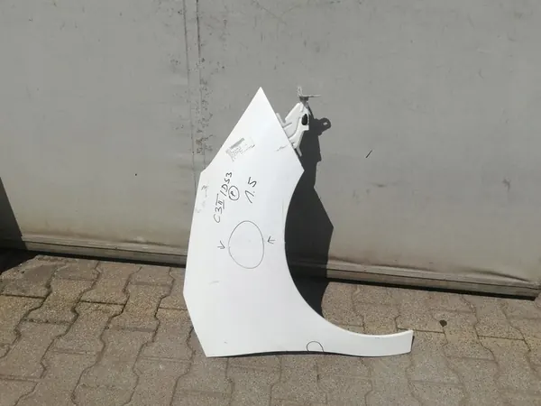 Fram höger skärm för Citroen C3 II, producerad från 2010, som visas i de bifogade bilderna. Delen är begagnad och lätt skadad. Den är lämplig för personbilar och är en originaldel med tillverkarens logotyp (OE). Färgen är transparent. OEM-delnummer är 7841Z7.