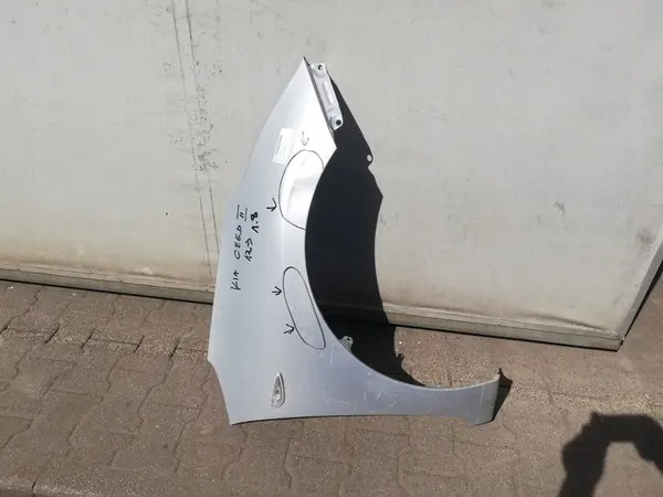 Fram höger skärm för Kia Ceed II, tillverkad från 2012. Artikeln är använd och visar tecken på skada som visas på de bifogade bilderna. Den är grå och passar personbilar. Delen är original, identifierad med katalognummer 66321-A2030.