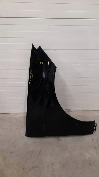 Fram höger skärm för Mercedes-Benz GLE (W166 - C292), OEM-delnummer A1668801206, lämplig för modeller från 2015 till 2019. Delen är begagnad och kräver lackering. Den är avsedd för personbilar och uppfyller GVO-kvalitetsstandarder som en originaldel med tillverkarens logotyp. Skärmen är placerad på höger sida av fordonet.