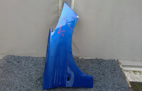 Fram höger skärm för Peugeot 206 som visas på de bifogade bilderna. Artikeln är begagnad och har reparerats på angiven plats. Den är kompatibel med personbilar och finns i svart färg. Delen är original med tillverkarens logotyp (OE) och OEM-delnummer är 7841 Z5. En moms faktura kommer att utfärdas.