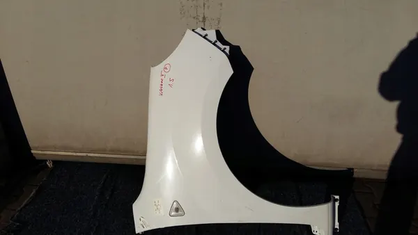 Fram höger skärm för Renault Kangoo II, tillverkad mellan 2008 och 2013. Delen är begagnad och har en lätt spricka, som visas på de bifogade bilderna. Den är lämplig för personbilar och är en originaldel med tillverkarens logotyp (OE). OEM-delnumret är 63 10 091 62R.