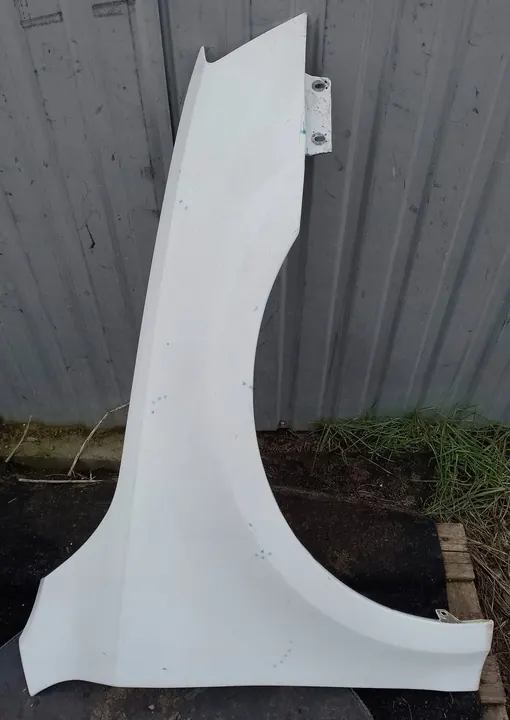 Fram höger skärm för Skoda Octavia III (5E), OEM-delnummer 5E0821106B. Skick: Använt med mindre transportskador markerade för tydlighet. Normala tecken på användning, smuts eller transportrep kan förekomma.