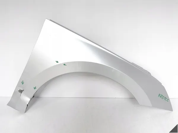 Fram höger skärm för SKODA OCTAVIA IV (4:e generationen). Skärmen är skadad och kräver reparation. Kontrollera artikelnumret innan köp för att säkerställa kompatibilitet med din version och undvika potentiella problem.