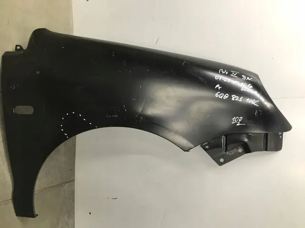 Fram höger skärm för VW Polo IV 9N från 2001 till 2005. OEM-delnr: 6Q0821106C. Detta är en begagnad del, och dess skick är synligt på de angivna bilderna. Eventuella skador, reparationer eller användningsspår är markerade. Ytterligare bilder finns tillgängliga på begäran.
