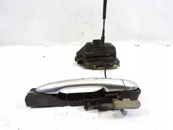Fram vänster dörrlås handtag för Laguna II 2. Detta är en originaldel med OEM delnummer 8200004747. Handtaget är begagnat men alla monteringspunkter är intakta. Delen var funktionell vid demontering. Kontrollera kompatibilitet med ditt fordon genom att matcha delnumret innan du köper.