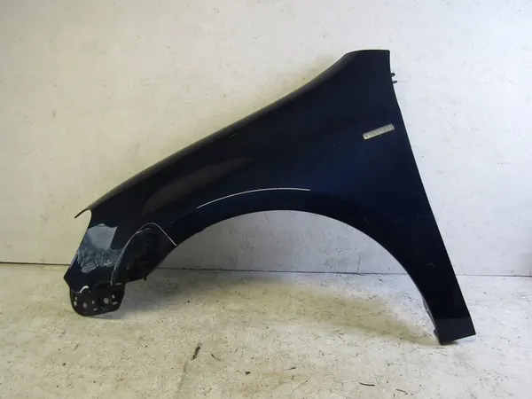 Reparationspanel för fram vänster skärm till VW Golf VI. Skicket är använt, med synliga skador på bilderna. Denna del är lämplig för personbilar och är avsedd för omlackering. Det är en reservdel av kvalitet jämförbar med originalet. OEM-delnummer är VW 5K6 821 021 B, med ytterligare katalognummer 951801-J och 6504-04-9534311Q.