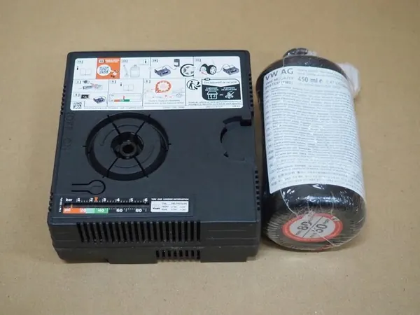 Hjulreparationssats som inkluderar en kompressor, en pump och 450ml lim (giltigt till 2026). Originaldelar från ett fordon med låg körsträcka. Använt skick. OEM-delnummer: 5N0012615H. Bilderna visar det faktiska tillståndet för den erbjudna delen. Faktura tillgänglig för moms.