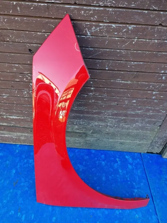 Höger framskärm för Audi A1 I 8X, modellår 2010 till 2018. Delen är begagnad och har mindre synliga skador som visas på bilden. Den är lämplig för personbilar och är en originaldel med tillverkarens logotyp (OE). OEM-delnummer är 8X0821106A.