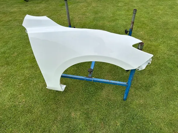 Original använd höger framskärm för MAZDA 3 III BM (2013-2019) i det skick som visas på bilden. Den är lätt skadad i botten och kräver omlackering. Delen är lämplig för personbilar och väger 10 kg. OEM-delenummer är B45A52211B.