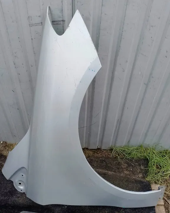 Höger framskärm för MERCEDES B-KLASS W246 från 2011 till 2017, OEM A2468810201. Produkten är begagnad och kan visa tecken på slitage, inklusive mindre bucklor och en markerad spricka. Normala tecken på användning, smuts eller transportrep kan förekomma.