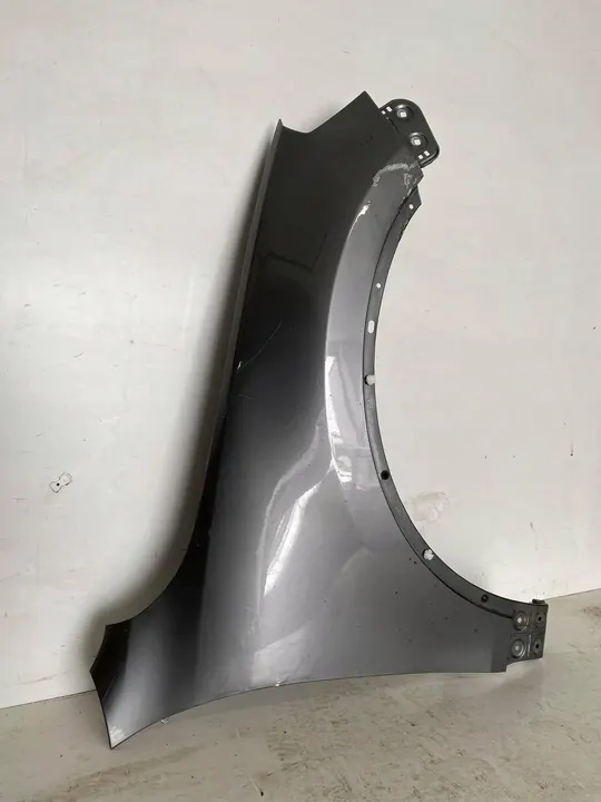 Höger framskärm för VW Touareg II 7P, tidigare reparerad och kräver nu omlackering. Delen är begagnad och kommer med moms faktura. Den är lämplig för personbilar och klassificeras som OEM-kvalitet med tillverkarens logotyp. Delnumret är 7P6821106E.