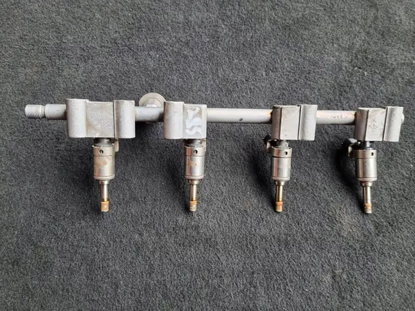 Komplett set av begagnade injektorer för Nissan X-Trail T32 (2014 - 2021). OEM-delnummer inkluderar 0261500210, 16600BV80A och 15345926326. Denna del är lämplig för fordon med en 1,6 L bensinmotor som producerar 120 kW / 161 HP. Fordonet har en högerstyrd konfiguration och en manuell växellåda. Färgkoden är G41 och körsträckan är 70627 km.