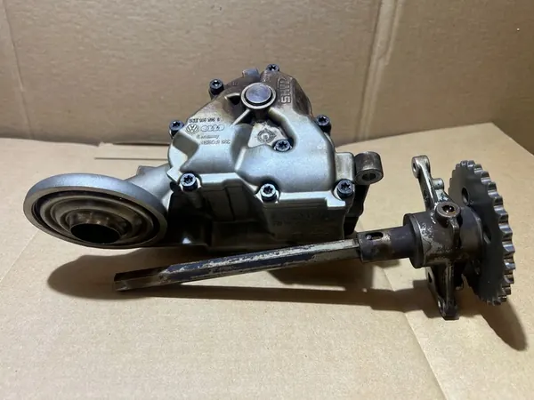 Oljepump från en Audi A6 C6 2.4 V6 med motor kod BDW. Original begagnad del i fungerande skick. Skicket är synligt på bilderna. Delnummer: 06E115105G, 06E109570B.