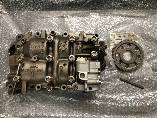Denna artikel är ett komplett kit för reparation eller konvertering från kedjedrift till växeldrift. Den passar alla 2.0TDI 8V och 16V motorer med pump-injektorer och CR. Skicket är mycket bra. Om du är osäker på om denna del passar, vänligen fråga med det förberedda artikelnumret. Kitet inkluderar en kassett med axlar, oljepump och växlar som visas på bilden, tillsammans med en ny drivning. Observera att olika varianter av delar kan finnas för samma bilmodell. För korrekt val av delar rekommenderas verifiering med artikelnumret. Här är några kompatibla bilmodeller och motor koder: