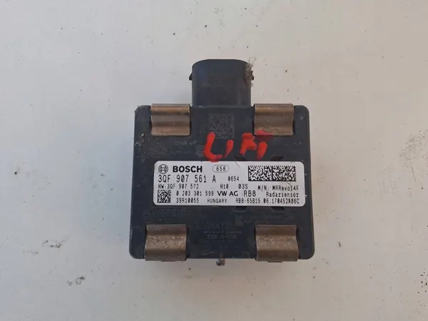 Original använd Volkswagen radar distronic, delnummer 3QF907561A, visar tecken på användning och transport. Produktbilderna visar den faktiska artikeln till salu. Ytterligare repor kan förekomma på grund av lagring och hantering. Denna del kommer från demontering och uppfyller GVO-kvalitetsstandarder som en originaldel med tillverkarens logotyp (OE).