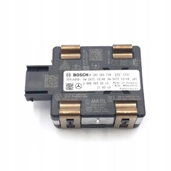Radaravståndssensor för MERCEDES-BENZ C-CLASS (W205). Delkod: A0009058913. Detta är en begagnad del, original med tillverkarens logotyp (OE). Den är avsedd för personbilar och monteras fram. OEM-koder inkluderar A0009058913, A0009053011, A0009056613 och A0009057011. En faktura med moms kan utfärdas.