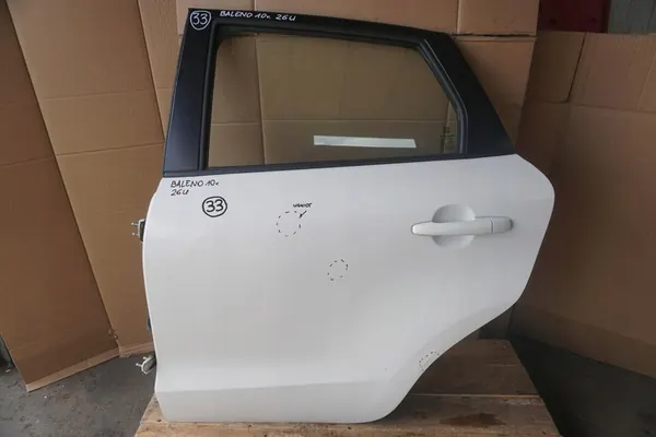 Vänster bakdörr för SUZUKI BALENO FE, modell 2019. Färg: 26U (vit). Skick: Använd. Bilden visar den faktiska delen som säljs. Kontrollera kompatibilitet med ditt fordon innan köp.