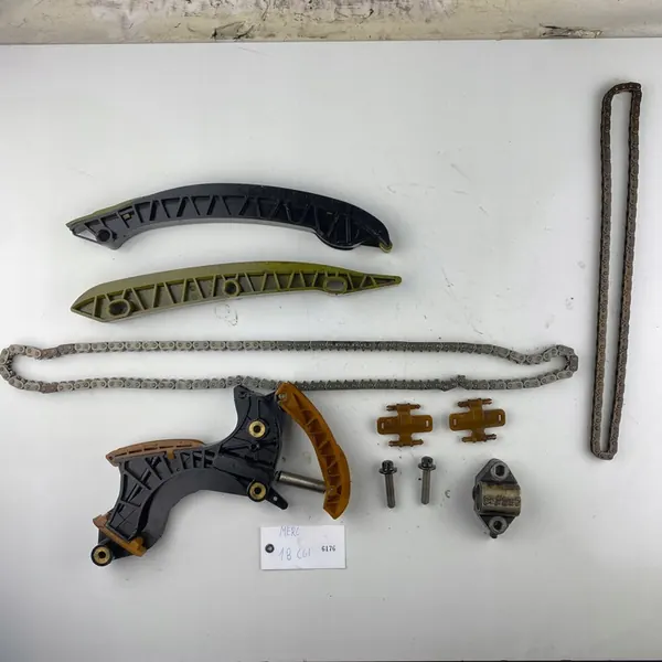 Timingkitet inkluderar OEM-nummer: A2710520640, A2710521416, A2710300963 och en kedja. Det kommer från motor 271.820 - 1.8 CGI. Kompatibelt med motorer 271.861, 271.860 och andra. Passar Mercedes-modeller: W204, S204, C204, W212, C207, A207, S212, R172 och fler. Skick är mycket bra, som visas på bilderna.