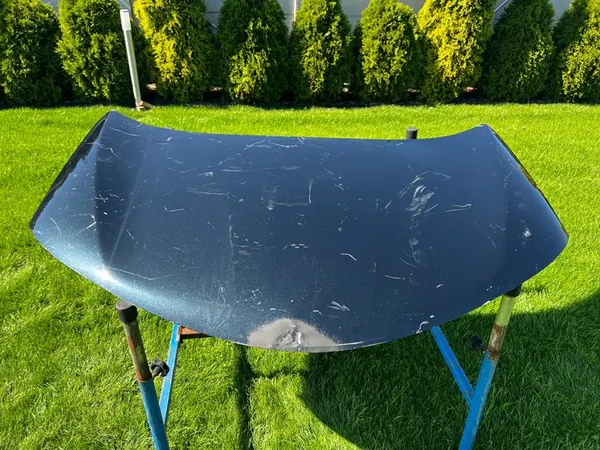 Original skadad motorhuv som visas på bilden. Kräver kaross- och lackreparation. Företagsinformation finns längst ner på sidan.