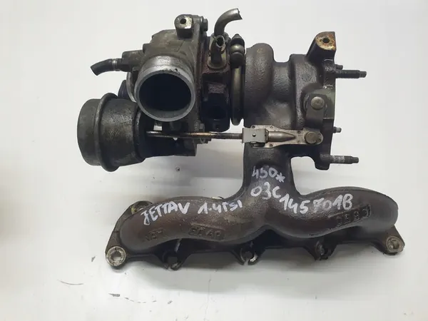 Denna annons erbjuder en begagnad turbo för VW Jetta V 1.4 TSI. Delnumret är 03C145701B. Bilderna visar det faktiska tillståndet för delen, så vänligen granska dem noggrant. Delen är begagnad och kan visa tecken på slitage. Delarna märks före leverans.