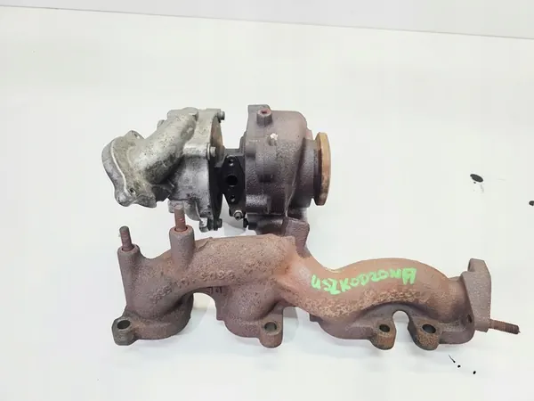 Turboaggregat för Audi A3 2.0 TDI. OEM-delnummer: 03L253019T. Detta är en begagnad del med ett litet axialspel på rotorn och en trasig monteringspunkt. Ställdon saknas. Förpackningen är en ersättning. Delen är lämplig för personbilar.