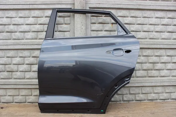 Vänster bakdörr för Hyundai Tucson III, modellår 2015-2020. Detta är en originaldel med lagernummer D44. Dörren är begagnad och finns i grå färg.