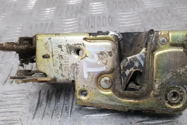 Begagnat vänster framdörrslås för VW TRANSPORTER IV (70XA). OEM-delnummer 701837015C. Denna del är original med tillverkarens logotyp (OE) och passar personbilar. Faktura kan tillhandahållas.