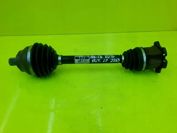 Vänster främre CV-axel för Audi A6 C6-modeller med 2.7 och 3.0 TDI-motorer. Delen är i begagnat skick, som visas på bilderna. Den är fullt funktionell. Vänligen hänvisa till katalognumret 4F0407271T för kompatibilitet med ditt fordon. Alla bilder visar objektets verkliga skick. Delarna märks före leverans och kommer från en laglig källa. Varje objekt genomgår kvalitetskontroll.