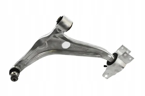 Vänster främre kontrollarm för Mercedes-Benz-modeller, inklusive GLA, A-Klass och B-Klass. OEM-delnummer 2473330300. Delen är begagnad och har varit involverad i en mindre brand, vilket resulterat i bränd gummi och en sprucken gummibussning. Fordonsdetaljer: Mercedes-Benz GLA, II H247, producerad 2022. Lackkod: 191 (metallisk svart). Delen är kompatibel med olika motor- och transmissionstyper i olika modeller.