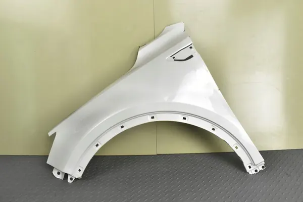 Vänster framskärm för KIA SORENTO IV MQ4, OEM 66310-P2000. Skärmen har mindre repor och bucklor som syns på bilderna. Det är en del från demontering; reflektorerna kommer från blinkande lampor och är inga skador.