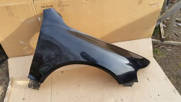 Vänster skärm för VW Touareg, modellår 2007-2010, i begagnat skick. Denna del är redo för lackering och finns på den främre vänstra sidan av fordonet. Delen är en originaldel (OEM) med OEM-delnummer 7L6821101P. Skärmen är kompatibel med personbilar och tillverkas av Tong Yang. En moms faktura kommer att utfärdas vid köp.