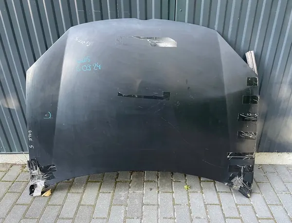 Motorhuv för VW Golf 5 med transportskador. Denna del är begagnad och behöver lackering. Det är en originaldel från Volkswagen (OE) med OEM-nummer 1K0823031J. Produkten väger 27 kg och är lämplig för personbilar. En moms faktura kommer att utfärdas vid köp.