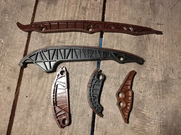 Användd timing slide rail för Volkswagen och Audi-fordon. Lämplig för 1.8 och 2.0 TFSI-motorer. Delnumren är synliga på bilderna. OEM-delnummer inkluderar: 06H109467AQ, 06K105209, 06K103319A, 06K109467, 06K109469N, 06H109469AH, 06H109509P, 06H109509Q och 06K109469M.
