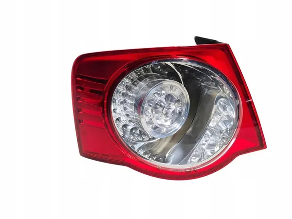 Använd vänster bakljus för Volkswagen Jetta 1K5, modellår 2006. Delnummer: 1K5945095G. Detta ljus är för vänster sida bak på en sedan. Ratten är på vänster sida. Ljuset innehåller några torkade insekter inuti, som visas på bilden.