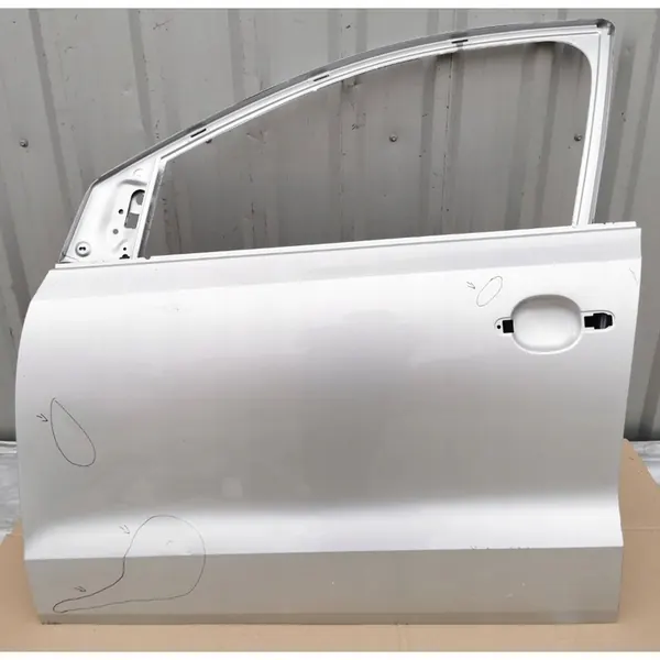 Främre vänster dörr för VW Polo V 6R 6C (2009-2017), delnummer 6R4831311. Denna begagnade del har reparerats på markerade områden. Fabriksnumret är 6R4831311-BAX och den är redo för lackering. Bilderna visar det faktiska tillståndet för artikeln.