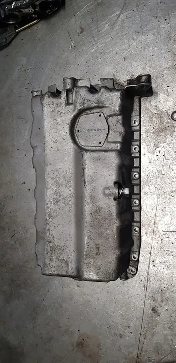 Oljetank i mycket bra skick. Denna begagnade del är kompatibel med personbilar med dieselmotorer. Det är en originaldel från Volkswagen OE, märkt med tillverkarens logotyp. Delnummer inkluderar 038103603AG, 038103603AJ och 038103601AK. Europeisk version. Momsfaktura finns tillgänglig.