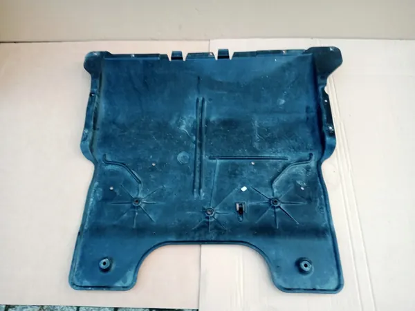 Motorplåt för VW T-CROSS och SEAT ARONA, delnummer 2Q0825236F. Denna originaldel visar minimala användningsspår och har lätt skada som visas på bilderna 3 och 4, som visar samma område på båda sidor. Alla fästen är intakta. Artikelns skick illustreras i de medföljande bilderna.