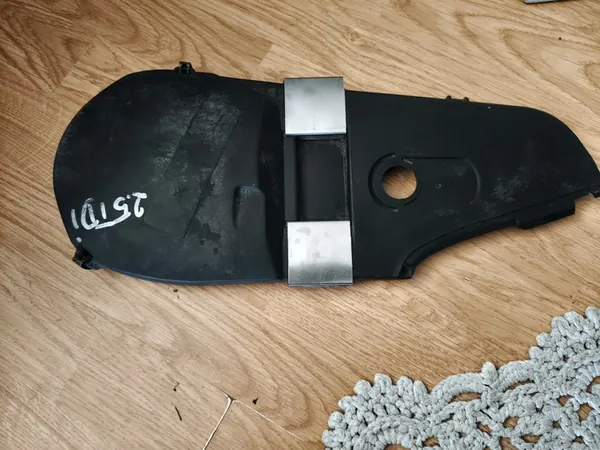 Täckkåpa för VW T4 2.5 TDI. Kåpan är komplett med monteringspunkter och har repor som visas på bilderna. Skick: Begagnad.
