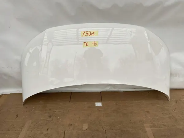 Motorhuv för Volkswagen, delnummer 7E0823033E, i begagnat skick som visas på bilderna. Huvudet har ett snitt i mitten och bucklor. Passar VW T6-modeller från 2016.