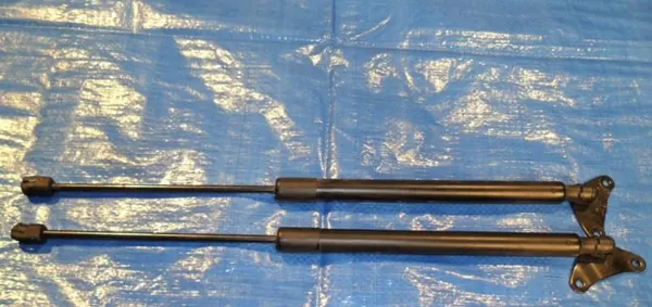 Set av teleskopiska lyftstöd för bakluckan på VW Tiguan modell 5N0Z, designad för den europeiska versionen med vänsterstyrning. Detta är en OEM-del från Volkswagen. Skick: Begagnad.